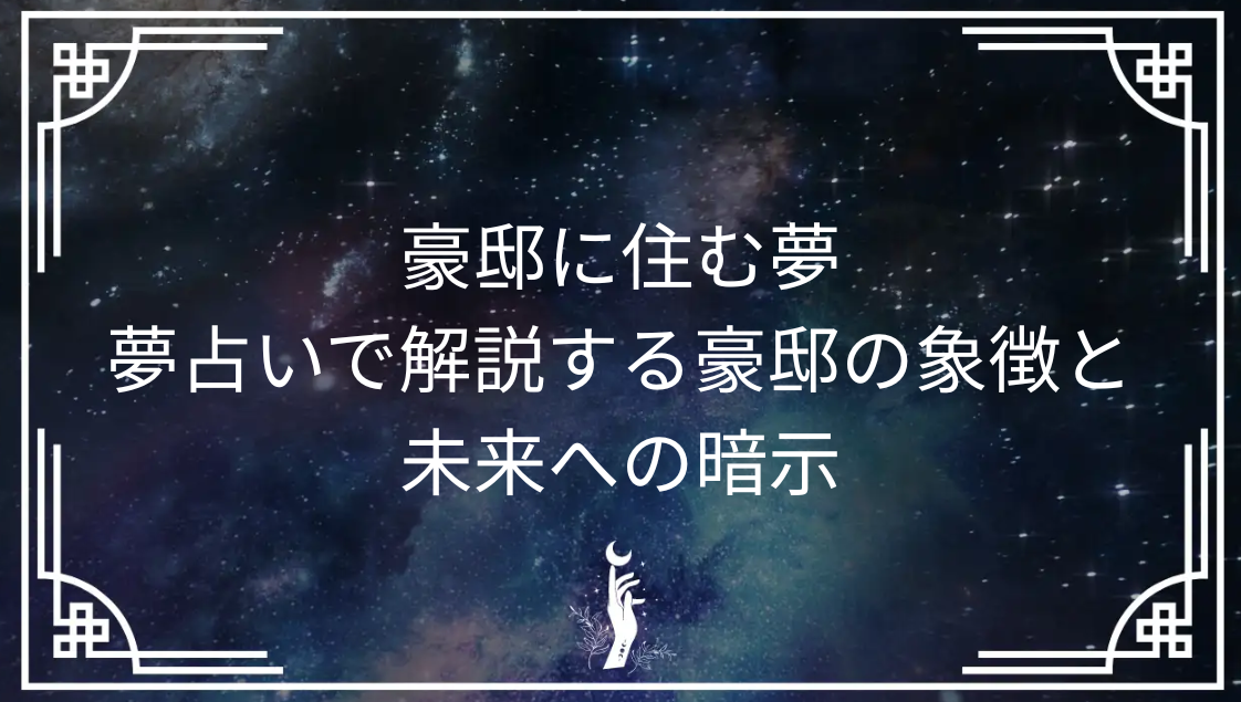 豪邸に住む夢は、一般的には豊かさや成功を象徴しますが、時には「過度な欲望」や「プレッシャー」を意味することもあります。夢占いにおいて、豪邸に住んでいることが逆に不安や負担を引き起こしている場合、あなたが抱える心のプレッシャーや過度な期待が表れている可能性があります。実際に豪邸に住んでいることが物理的に現実的ではない場合、夢は「手に負えない目標」や「他人からの期待に押し潰されそうな感覚」を反映していることが多いです。
