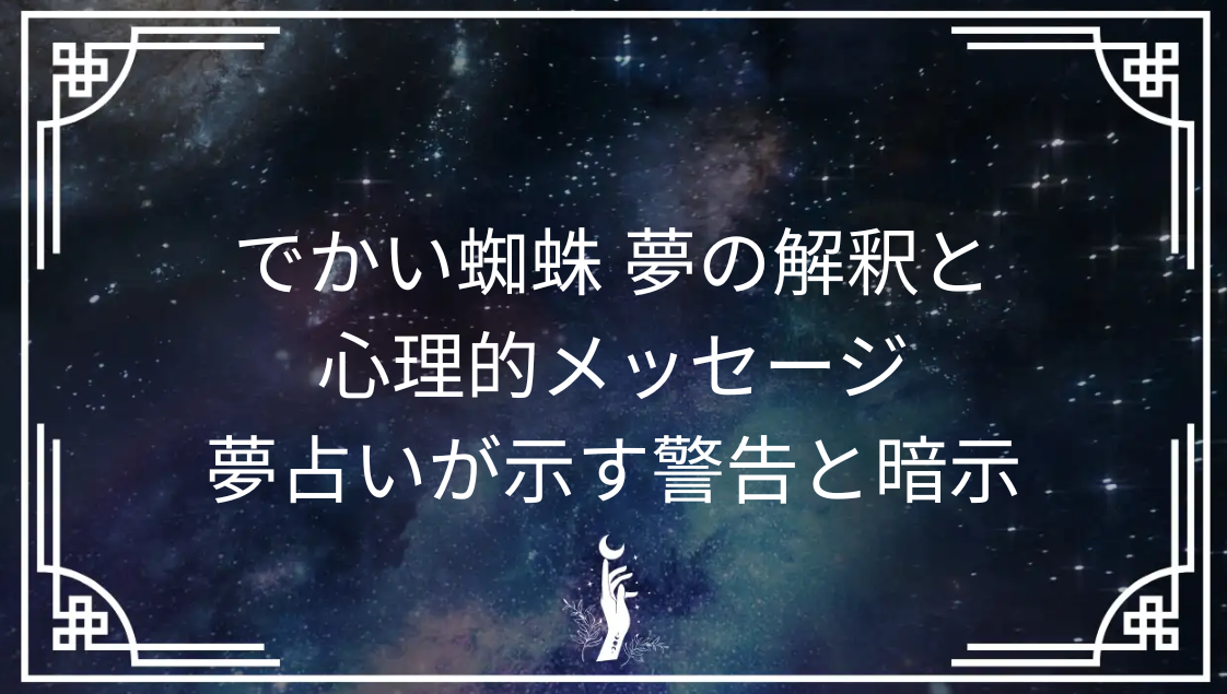 「でかい蜘蛛」の夢は、そのサイズによって非常に強いメッセージを持つとされています。小さな蜘蛛が示す警告や感情の抑圧が、巨大な蜘蛛になることで、さらに強い意味を持つことがあります。大きな蜘蛛は、現実の中で直面している問題が大きすぎて、対処が難しいと感じていることを示している場合があると言われています。また、でかい蜘蛛は、生活や仕事、関係において「大きな課題」や「重要な決断」を示唆することもあります【引用元:https://uranai.callat.jp/posts/156】。