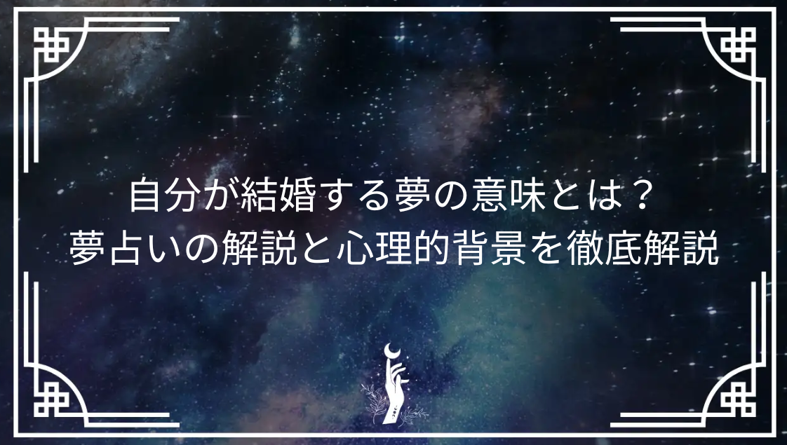 自分が結婚する夢を見たとき、何か特別な意味があるのだろうか、と感じることが多いと思います。夢占いにおいて、結婚のシンボルは非常に重要な意味を持ちます。結婚は「結びつき」や「新たな始まり」を象徴するため、結婚の夢はその人の心情や未来に向けた兆しを示すことがあると言われています【引用元:https://uranai.callat.jp/posts/978】。
