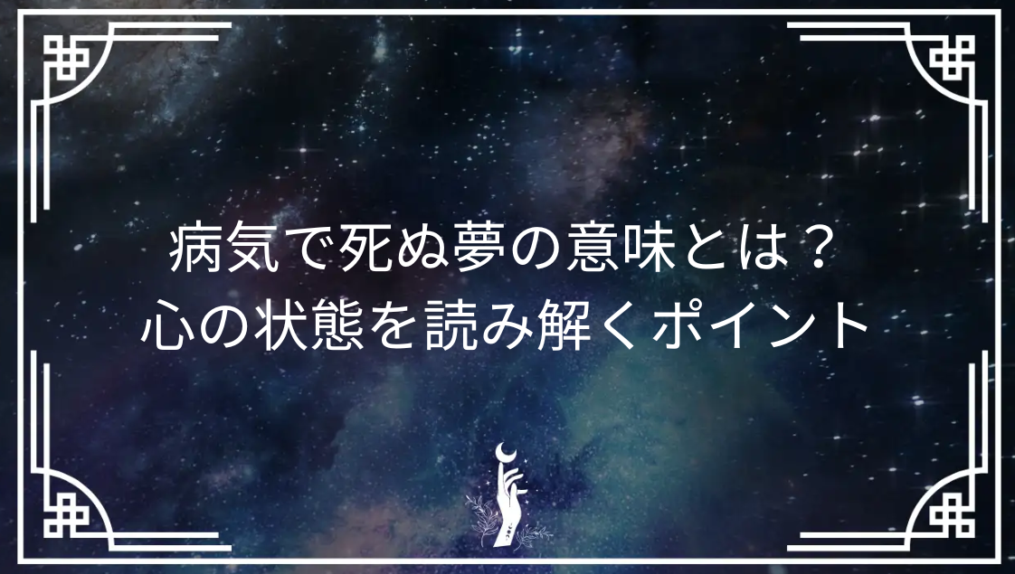 夢占いにおいて「病気で死ぬ」というテーマは、一般的に大きな変化や新しい始まりを象徴すると言われています。死ぬことが恐怖や不安を引き起こす一方で、この夢はしばしば「終わり」と「始まり」のサイクルを示すものとも解釈されています。実際、夢占いでは、死は必ずしも物理的な死を意味するわけではなく、古い自分を終わらせ、新しい自分を迎えるための一歩として解釈されることが多いです【引用元:参考記事】。