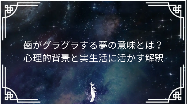 歯がグラグラする夢を見たとき、何か不安やストレスを感じていることを自覚するきっかけになります。しかし、この夢をポジティブに捉え直すことで、心の安定を取り戻す方法を見つけることができます。まず、この夢が示す意味を理解し、それを心の整理や実生活の改善に活かすことが大切です【引用元:https://uranai.callat.jp/posts/391】。