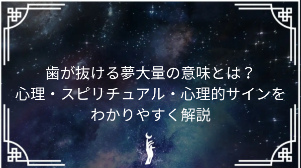 この記事では、歯が抜ける夢が示す実生活への影響と、その後に実践すべき具体的なリラックス法や心の整理法を提案します。夢を通じて自分にできる心のケアや対処法を理解し、日々のストレスや不安を軽減する方法を学んでいきましょう。