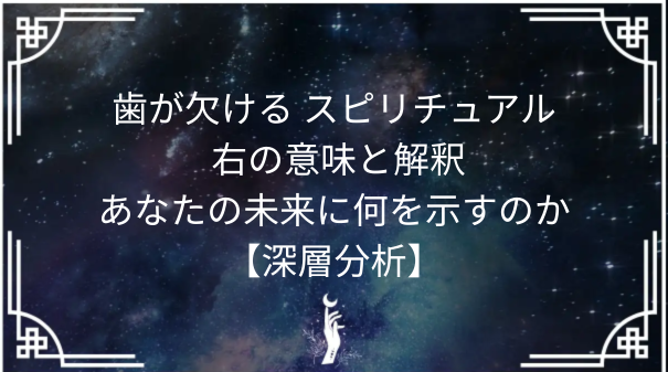 歯が欠ける夢を見た場合、その背後にはスピリチュアルなメッセージが隠されていることが多いです。右の歯が欠けるということは、変化や挑戦に対する不安を示している場合がありますが、スピリチュアルな視点からは、その不安を乗り越えるためのエネルギーを取り入れることが必要だとされています。