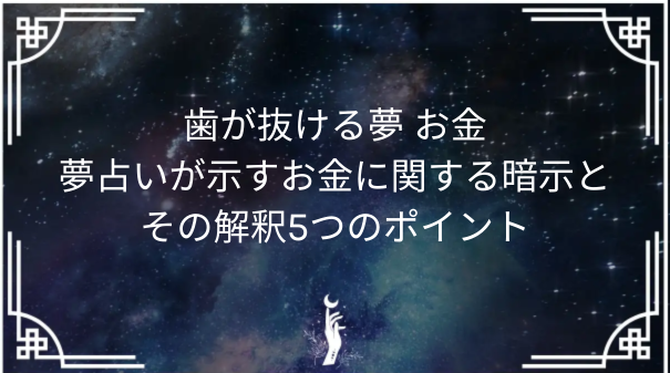 歯が抜ける夢は、多くの人にとって不安を感じさせるものです。しかし、この夢はスピリチュアル的な意味を持ち、金運や経済的な状況に関連しているとされています。歯が抜けるという状況は、何かを失うこと、特に物質的なものや安定していたものが崩れることを示すと言われています。そのため、この夢は金銭的な不安や経済的な変動を予兆する場合があるのです。