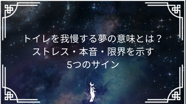 スピリチュアル的には、トイレを我慢する夢は「感情の流れが滞っている状態」を示すことがあるようです。