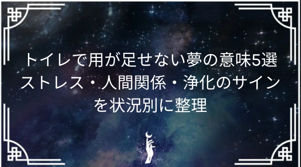 ここは断定せず、「自分の体感」を優先で大丈夫です。Q1: トイレで用が足せない夢を何度も見るのは悪い意味ですか?