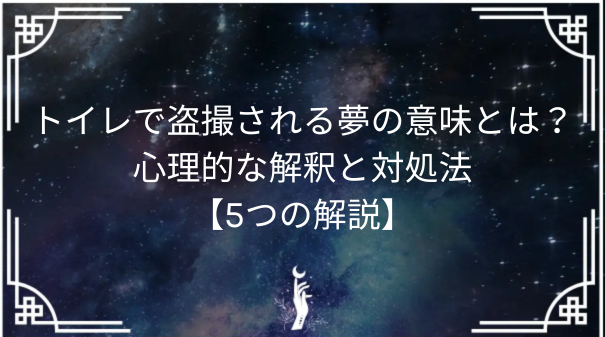 これらの体験談を通じて共通していることは、「トイレで盗撮される夢」が心の中で抱えている不安やストレスに気づかせ、実生活での変化を促すきっかけとなったことです。夢占いは、単に夢の意味を解釈するだけでなく、心の整理や感情の解放に向けた重要な手助けをしてくれるものです。