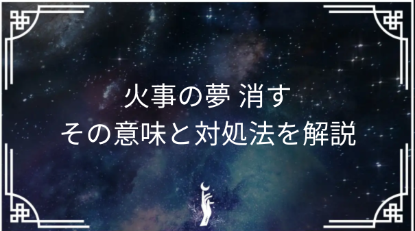 A1: 火事の夢 消すは、通常「吉夢」として解釈されることが多いです。火事は強い感情の爆発を象徴することがありますが、それを消すことはその感情を制御し、心の中の問題を解決しようとする行動を示しているとされます。問題解決に向かって前進している証拠とも言えるでしょう。