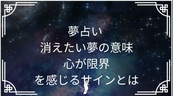 A1: 消えたい夢は、凶夢と断定されるものではないと言われています。仕事や人間関係、生活の中で感じている強い不安や疲れが、心の状態として夢に表れている可能性があると考えられています。何か悪い出来事を予知する夢というより、心の負担に気づくためのサインとして受け取られることが多いようです。