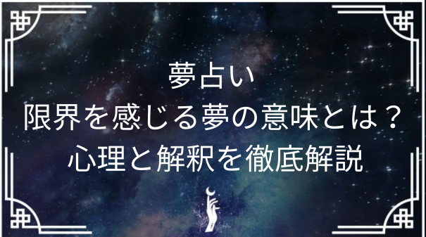 限界を感じる夢を見ると、つい不安や恐れを感じることもありますよね。でも、実はこの夢、必ずしも悪い意味を持つわけではないんです。夢占いにおいて、「限界を感じる」という状況は、何かに対する挑戦や大きな変化の前触れとも考えられています。この夢を見たあなたは、今、何か新しいことに取り組んでいたり、仕事や人間関係で大きな決断を迫られているのかもしれません。