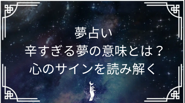 「辛すぎる夢」を見たあなたは、無意識に心の中で感じている深いストレスや不安を反映している場合があります。夢占いにおいて、辛さや苦しみは、あなたが直面している状況に対する心の反応を示すサインとされています。このような夢が表すのは、現実で抱えている問題や感情的な重荷が、無意識に夢の中で具現化した結果です。