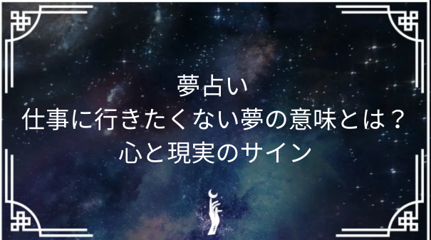 仕事に行きたくない夢を見たあなたは、心が「少し立ち止まって」と伝えているのかもしれません。この夢は凶夢というより、整え直すチャンスを含む吉寄りの傾向だと言われています。心理学的には疲労のサイン、スピリチュアル的には方向修正の合図と考えられることもあるようです。まずは夢を否定せず、「今の自分、どう感じてる?」と声をかけてみてください。