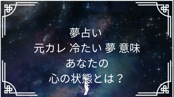 A1: 元カレが冷たい夢を見ることは、必ずしも悪い意味ではありません。スピリチュアル的には、過去の感情や未解決の問題に向き合う時期が来ていることを示す場合が多いと言われています。冷たさが象徴するのは、感情の整理や過去との決別を意味していることがあり、逆に前向きな変化を迎えるためのサインと考えられています。
